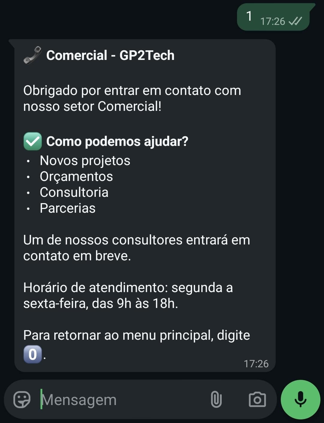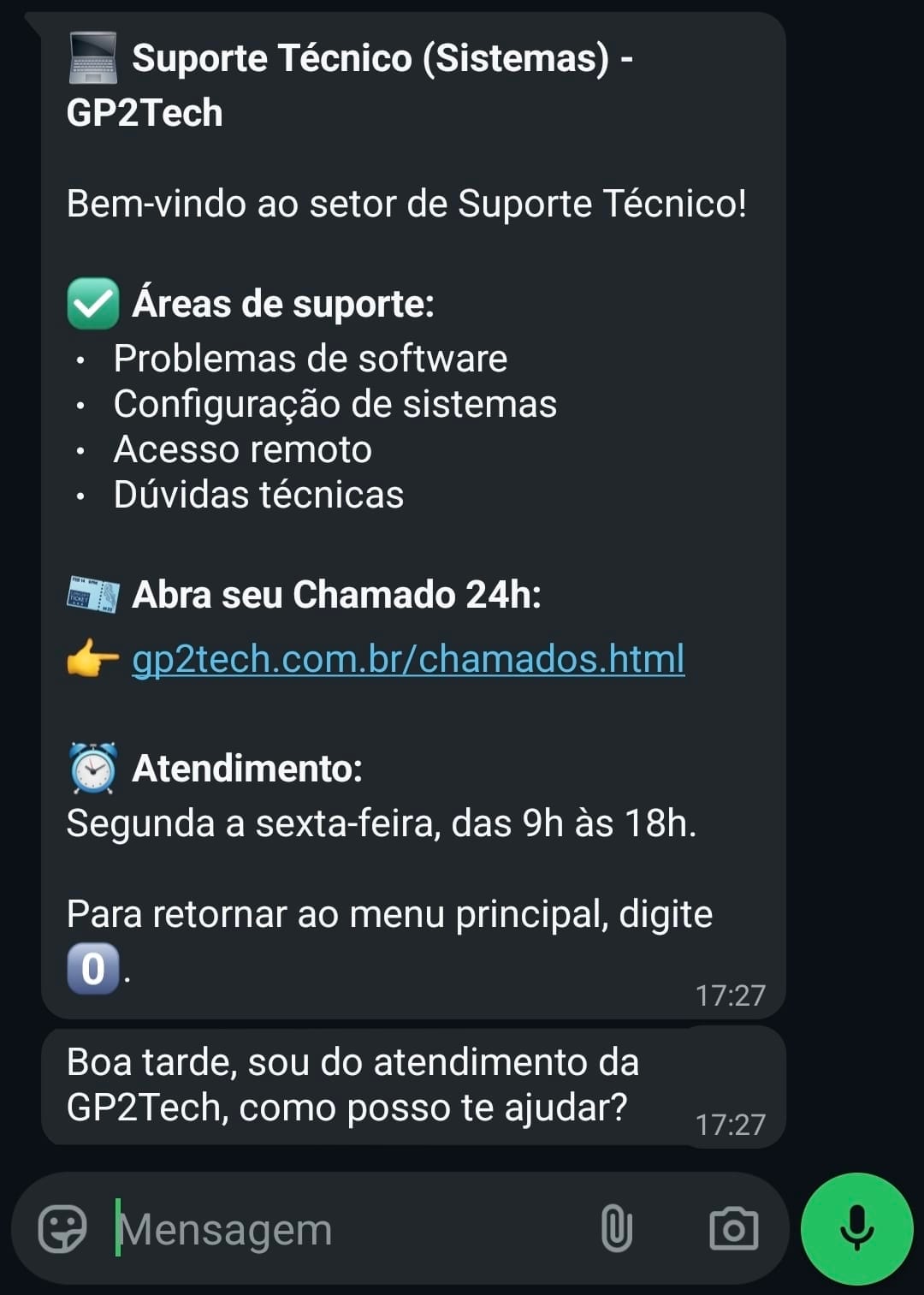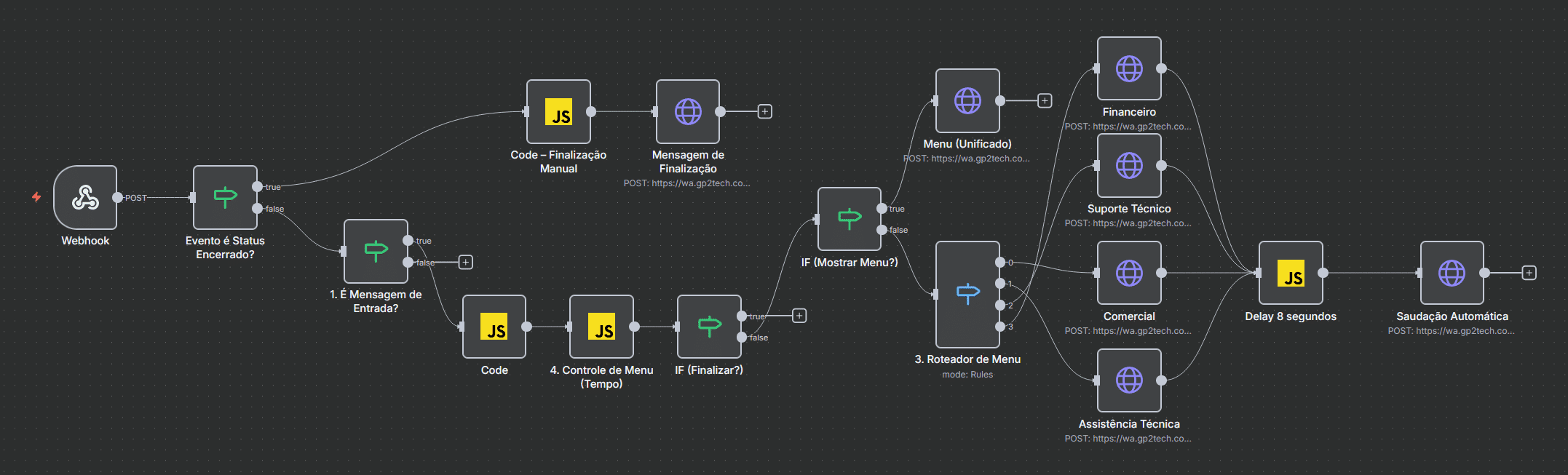 - Fluxos automatizados com menus inteligentes